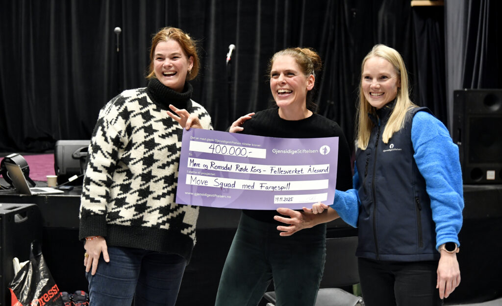 De voksne i ledelsen for Fargespill i Ålesund ante lite da Mari Dorte Jønland Michaelsen fra Gjensidigestiftelsen kom på besøk.