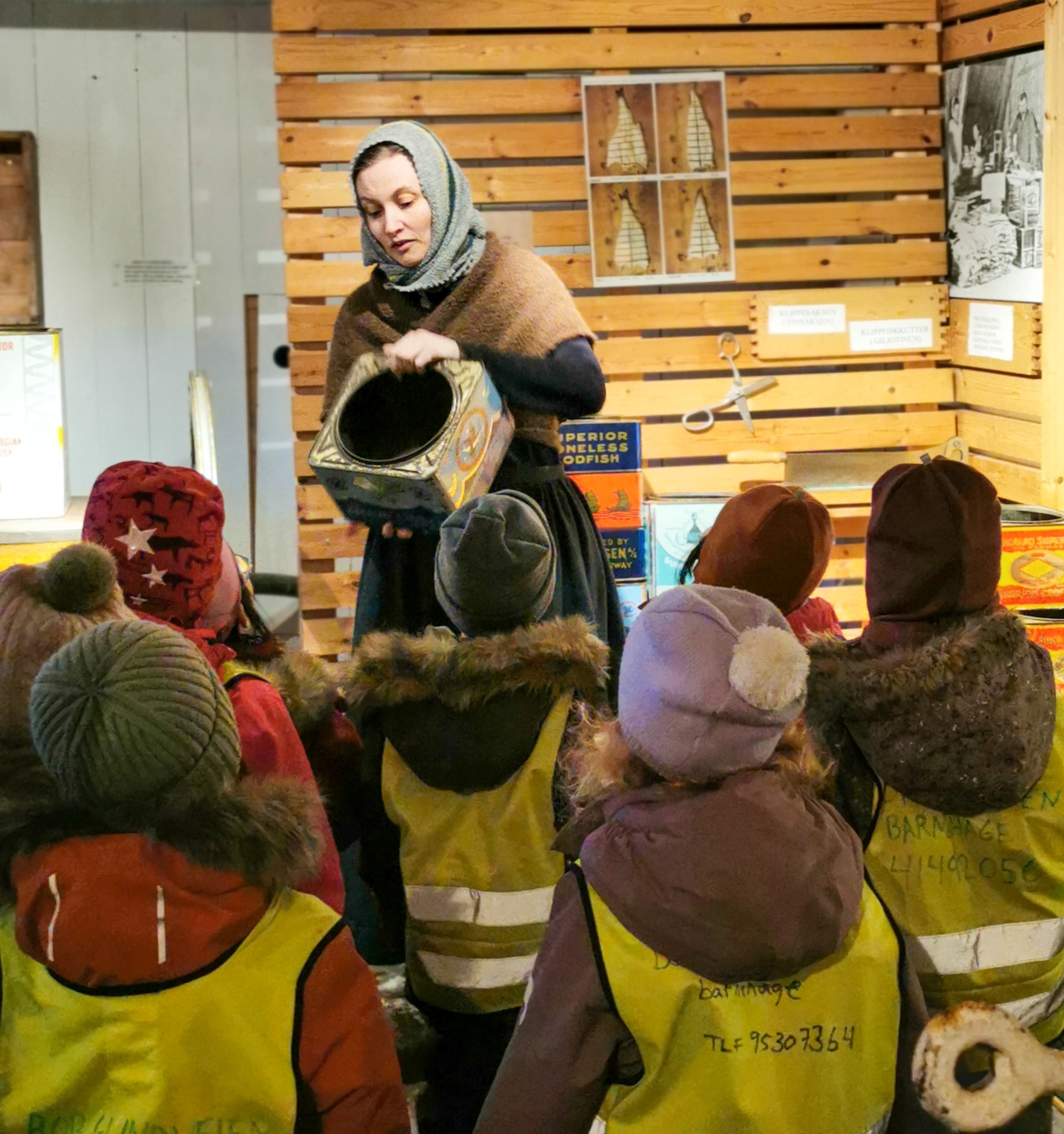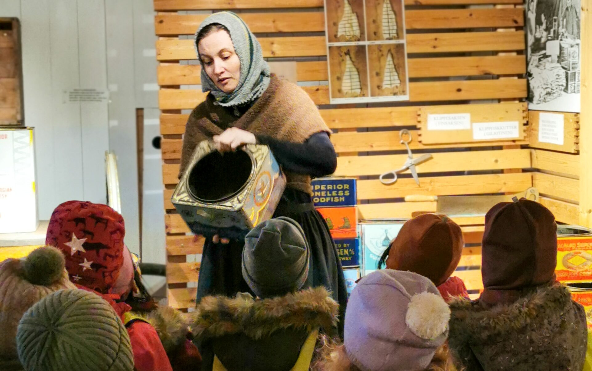 Mer enn 130 barnehagebarn deltar i disse dager på omvisningen «Fiskeribyen som brant» på Fiskerimuseet.