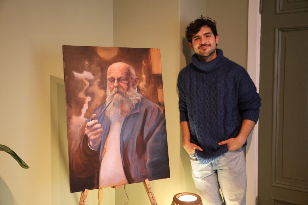 José Moncada har stått for maleriene som smykker de ærverdige veggene i Huset. Kanskje noen kjenner igjen mannen på bildet?