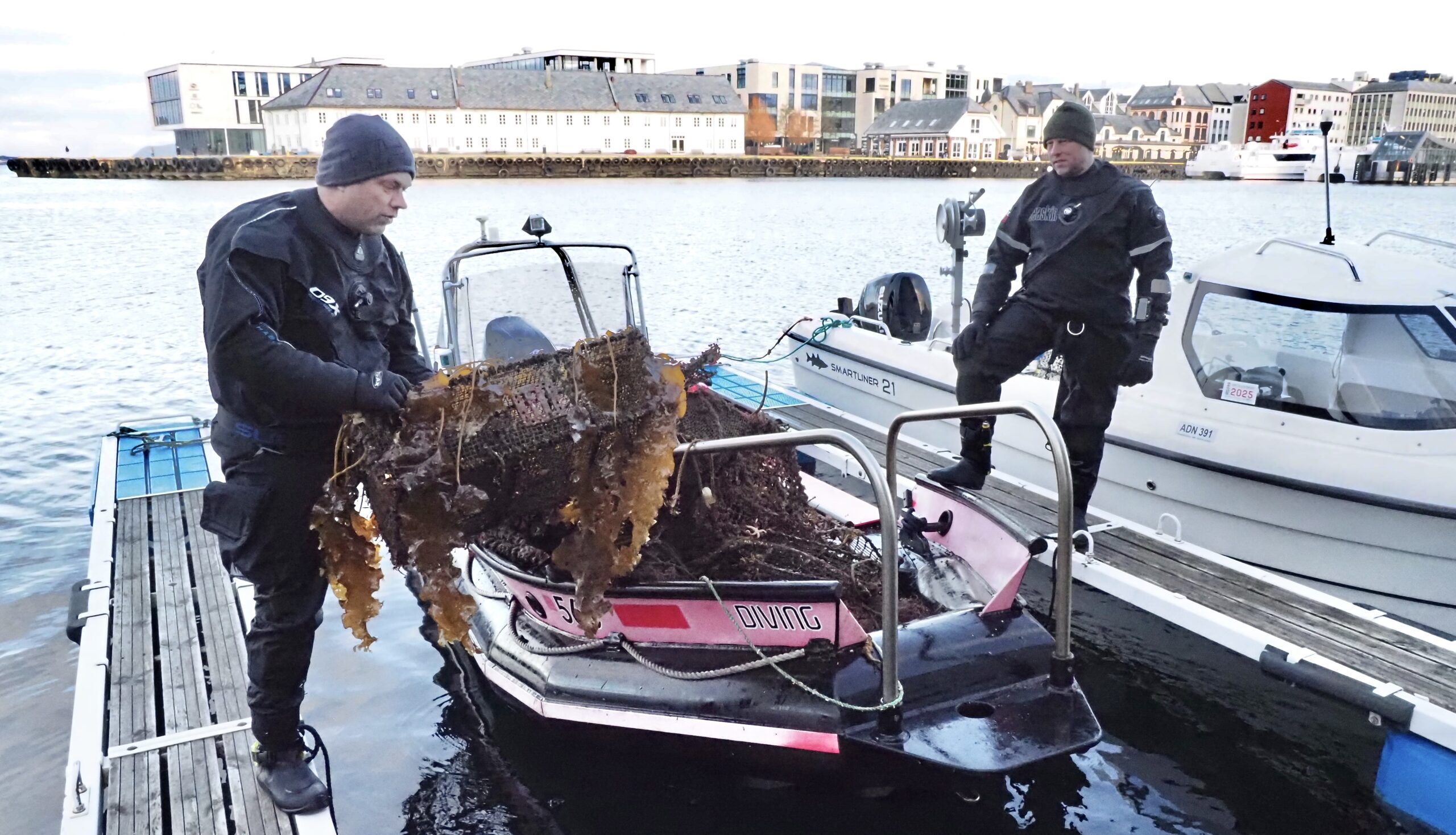 – Det kan være båter som har kjørt over tauet, eller folk som ikke kan å knyte de skikkelig fast. Uansett årsak, så har de havnet på bunnen der de blir liggende å gjøre stor skade på miljøet og dyrelivet, sier Jan Thomas Roaldsand og Tore Molnes som begge bruker raust av både fritid og penger på ryddearbeidet.