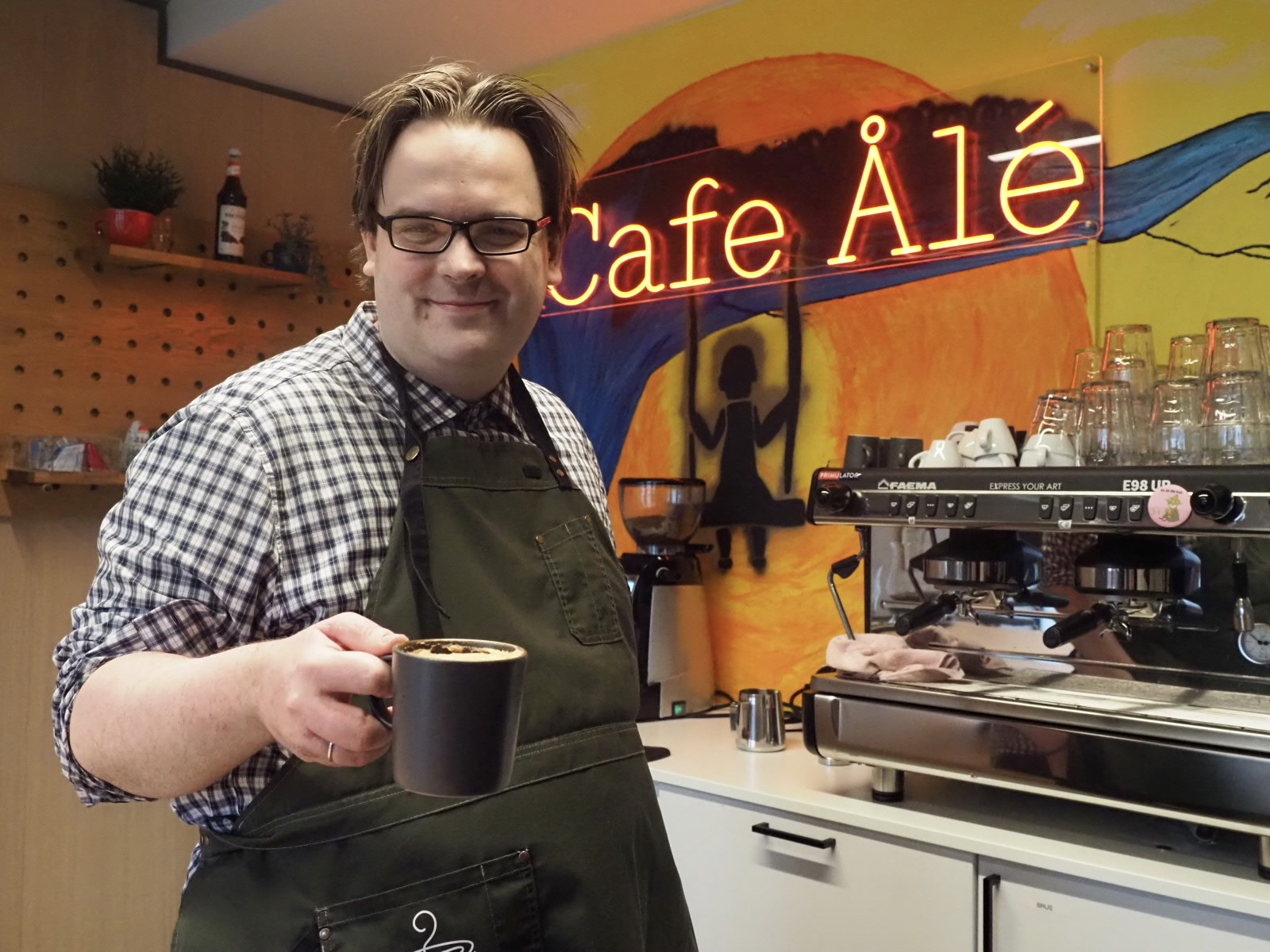 – Jeg er klar til å ta i mot bestilling, sier Andreas som er fast medlem av kjøkkengruppa og som elsker å lage kaffe. – Hvilken er din favoritt å lage, spurte vi og valget var tatt!