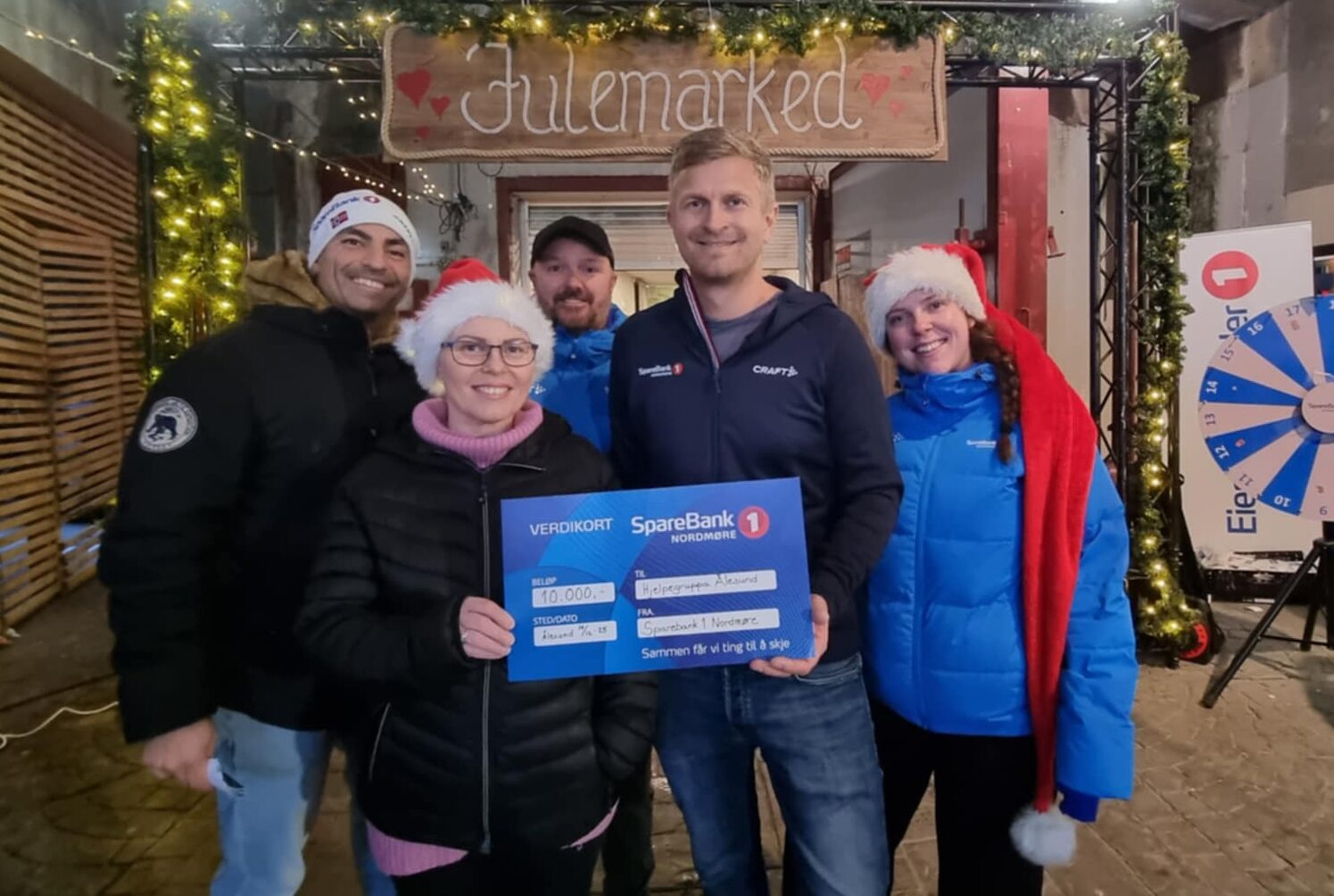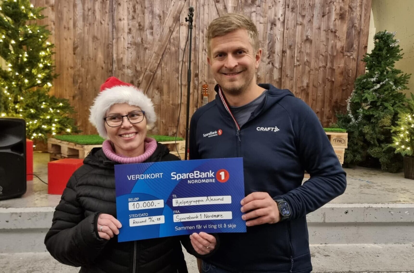 - Vi fikk inn mange gode tips til hvem som fortjente årets julegave via saken hos Bypatrioten, så det er tydelig at mange gjør en solid jobb for å hjelpe andre i denne byen. Valget falt til slutt på Hjelpegruppa Ålesund, sier banksjef Arne Nordal i Sparebank 1 Nordmøre som kunne overrekke sjekken under siste dag av julemarkedet.