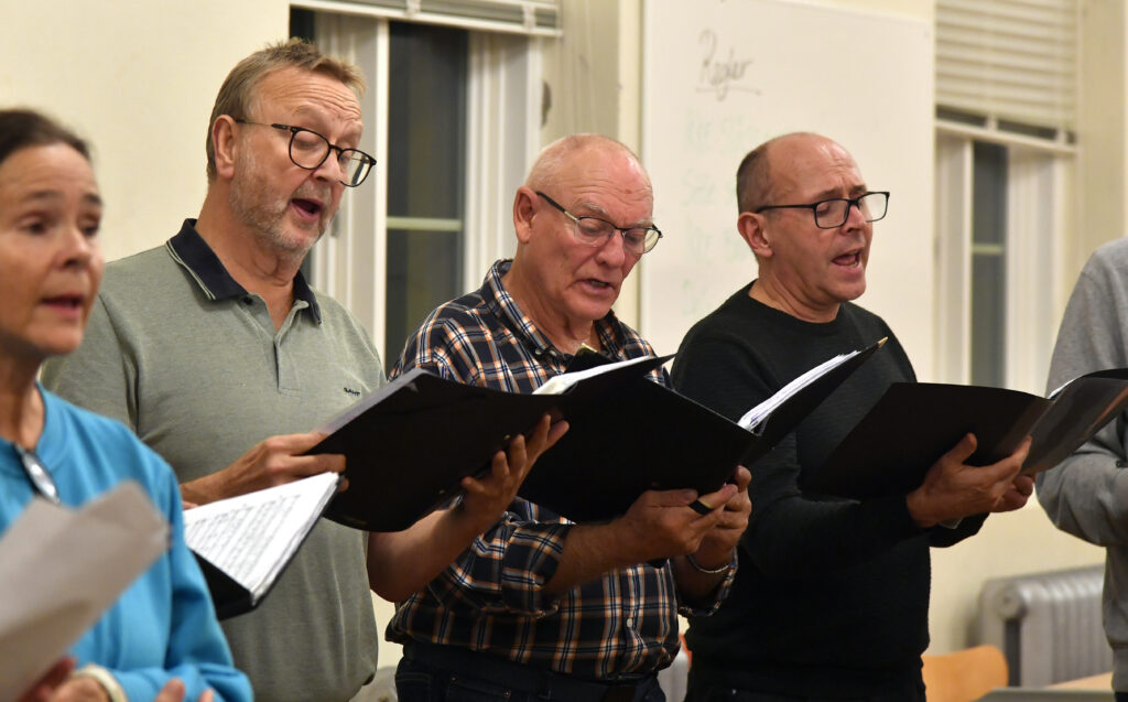Sobra scene søndag klokken 18.00 der altså. Og koristene sier det hele vil vare litt rundt halvannen time. Og etter øvingen kan vi bekrefte at Moljegapet Blandakor absolutt er i rute.