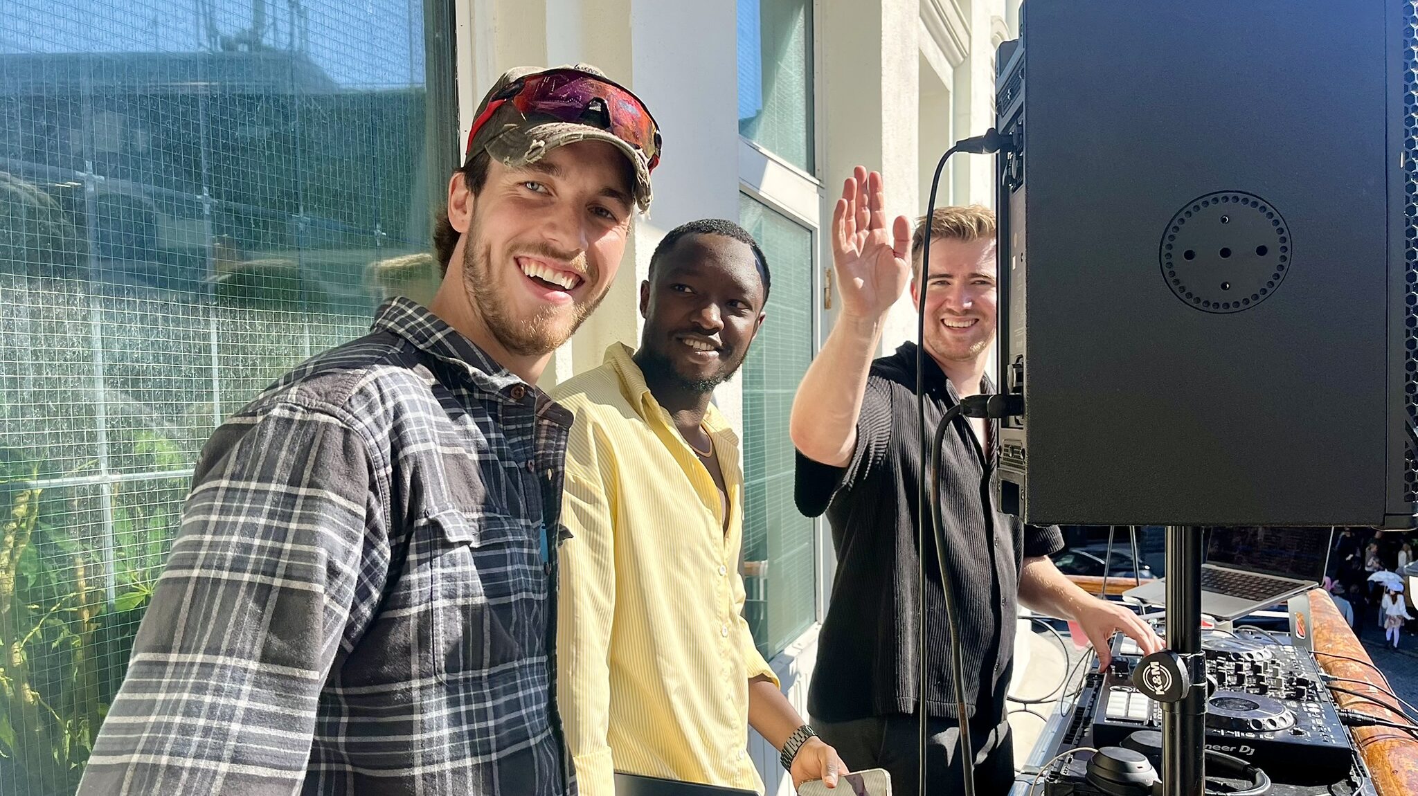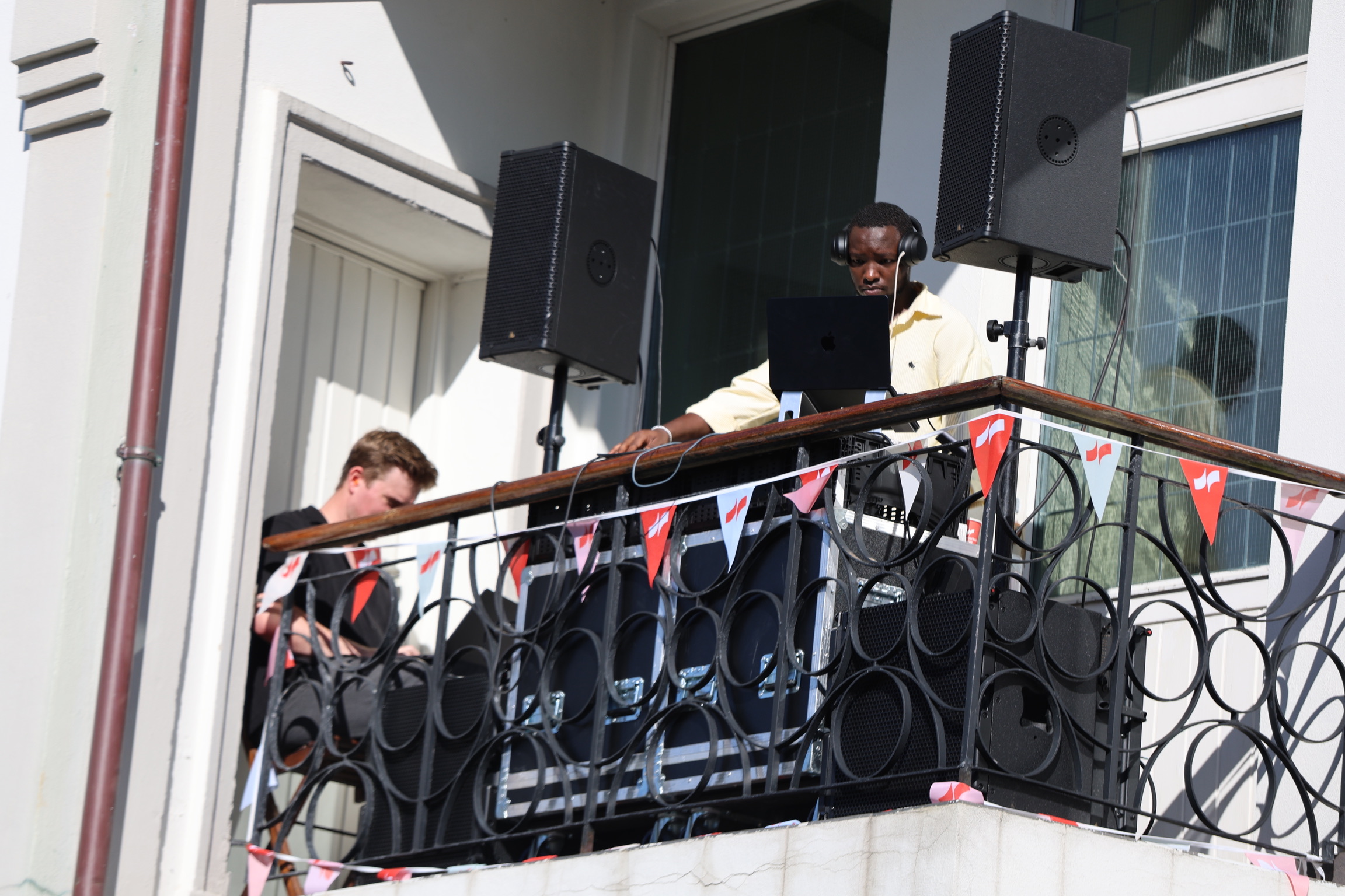Kultursjokk består av fire medlemmer. To av dem sto på balkongen denne dagen, mens de to andre spilte i Oslo. I tillegg fikk de med seg DJ Rodrigues, som har spilt på flere av utestedene i byen.