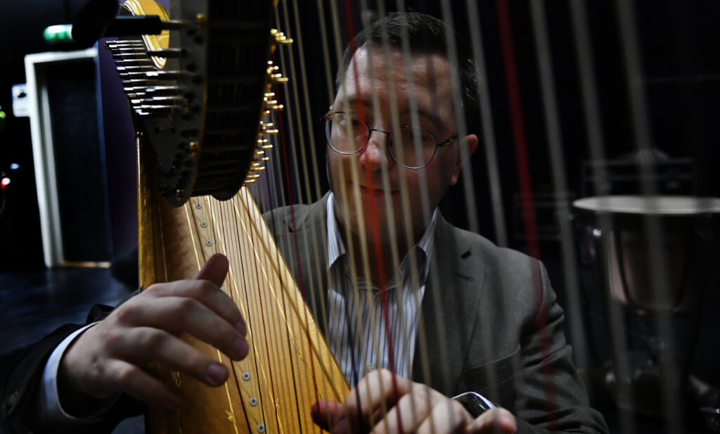 Leonhard har studert med tverrfløyte som instrument, men spiller både harpe og fiolin.