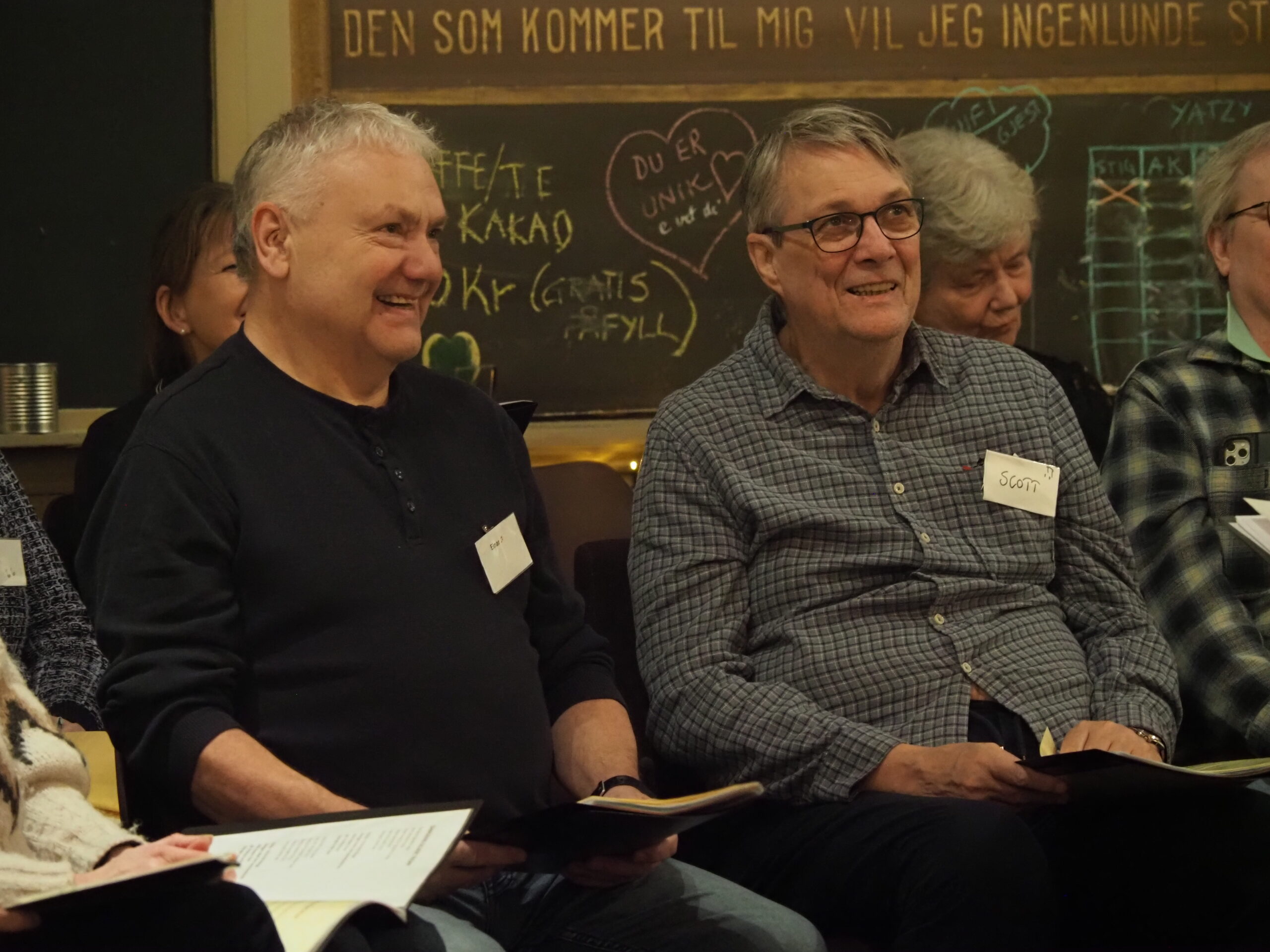 I lokalene sitter smilene løst og noen som kan hjelpe til er aldri langt unna, enten det er behov for å sette på kaffe, være ei trygg hånd å holde i, som samtalepartner eller hjelpe til med å sette nye noter inn i permen.