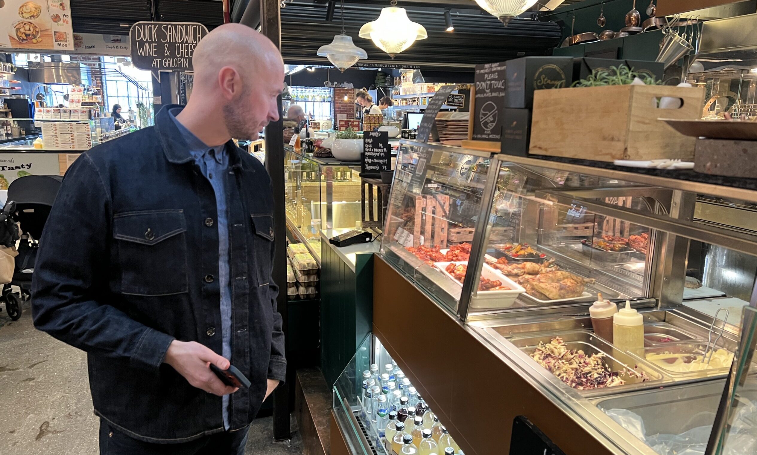 – Jeg har knapt spist noe i dag, sier han og det er bare å hive seg i bestillingen for rask stabilisering av blodsukker. Vi lander på kylling fra Stange, en av mange aktører som er samlet under ett og samme tak på Vulkan.