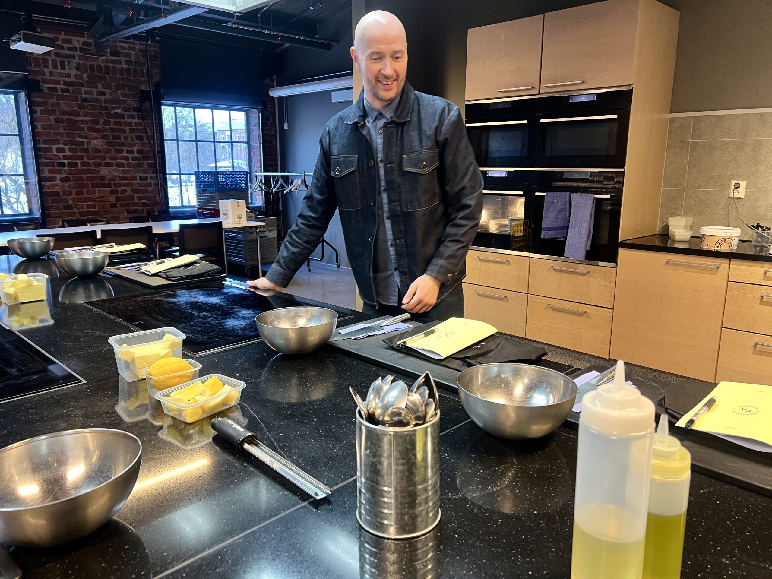 Og her er vi. På et sted som har gitt og gir både kunnskap og inspirasjon for komikeren som i runde på runde i konkurranser har vist seg kokkejakka verdig. Han kommer susende inn dørene med sekken på ryggen. Rett fra oppdrag.