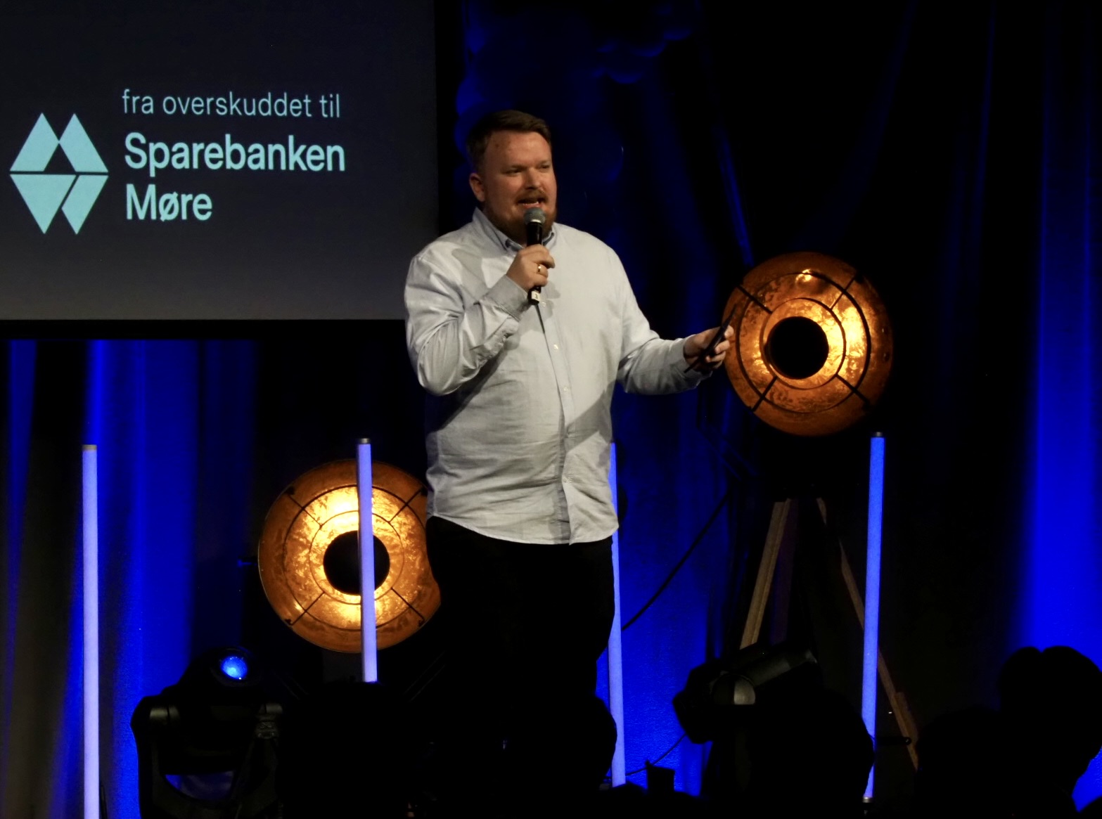 For å sy det hele sammen, og lede den fullsatte salen gjennom dagen, hadde banken hentet inn programleder og skuespiller Oskar Fjørtoft (31) fra Larsnes. Han fikk selv Teft-stipend i 2020, og sier det var et viktig kompliment.