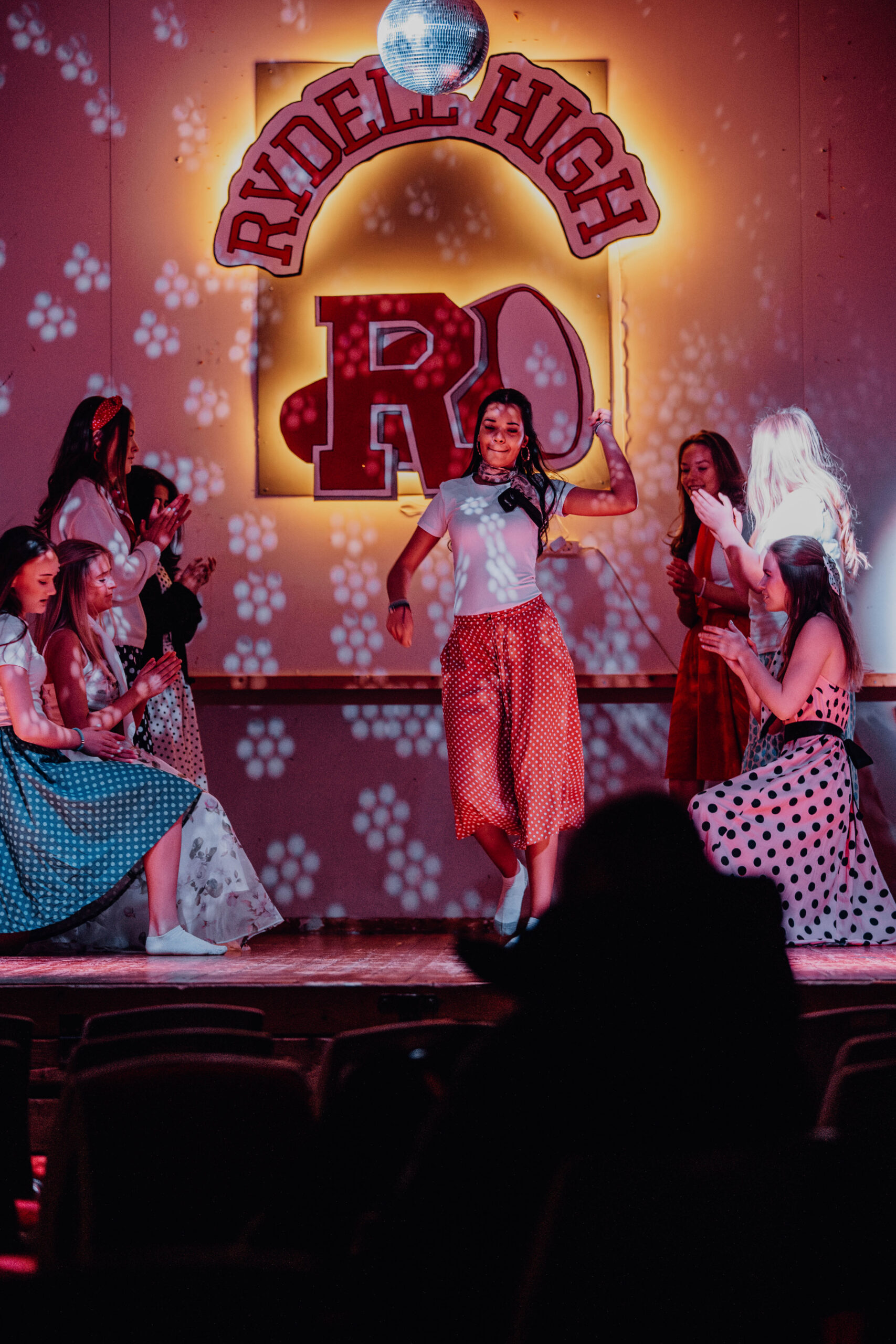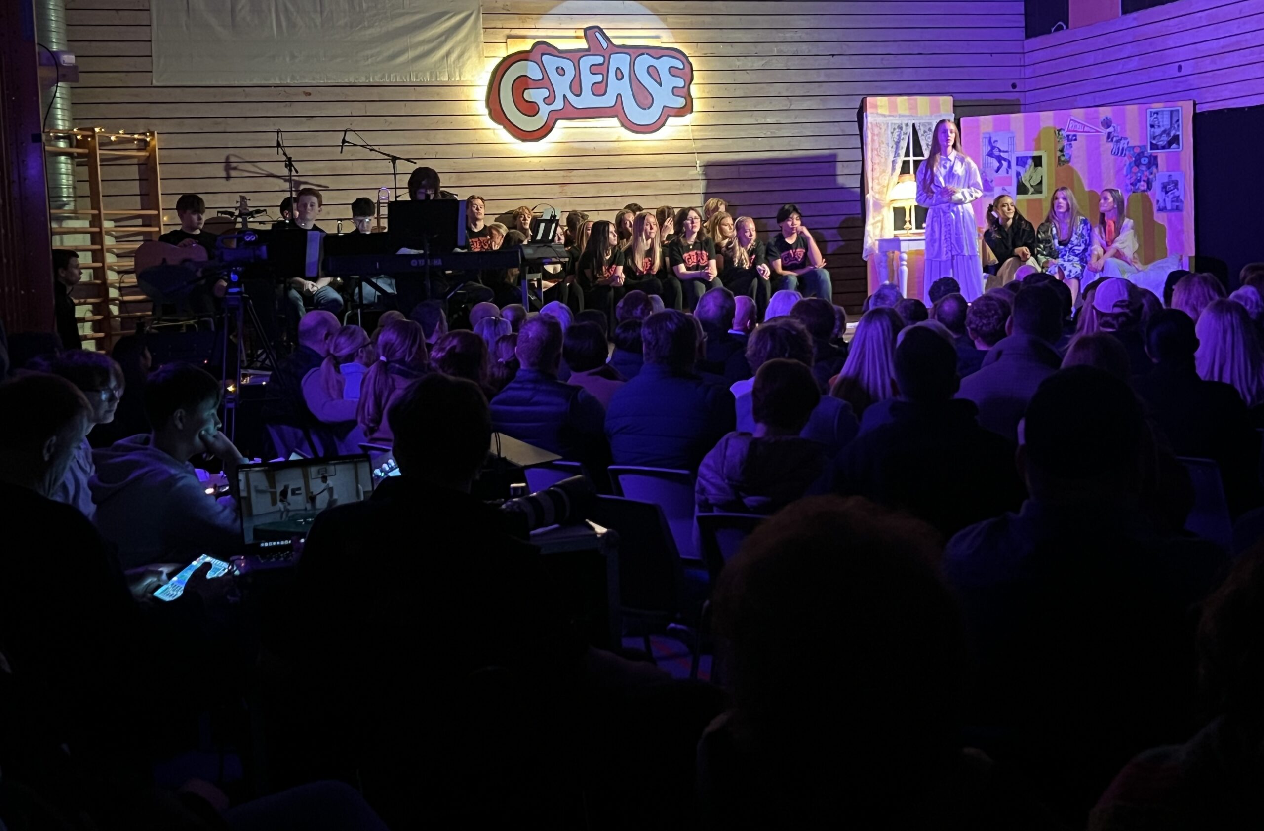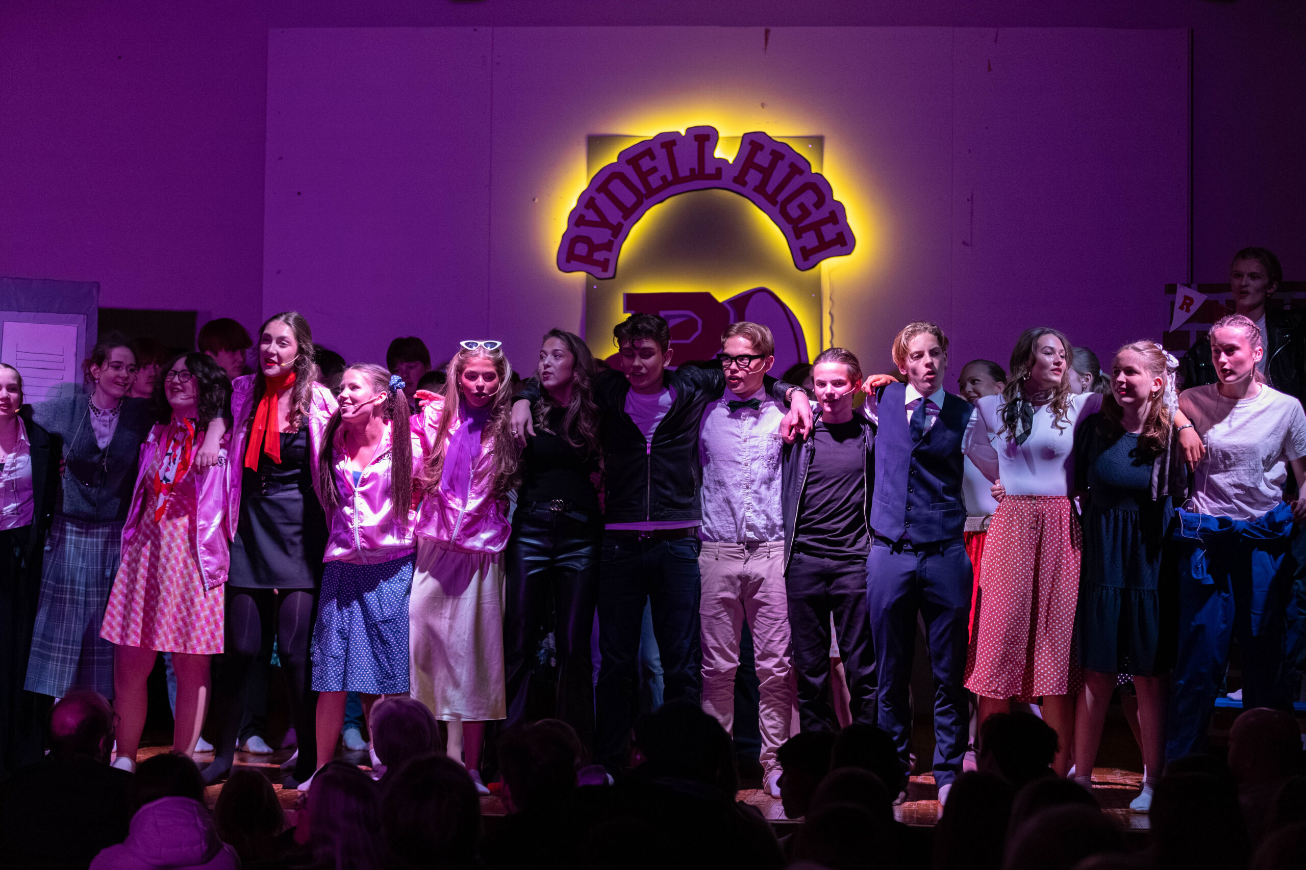 Om vi kunne relatere? Hvem husker vel ikke historien om Danny og Sandy, Pink Ladies, resten av gjengen og intrigene på Rydell High? Og den ikoniske amerikanske musikalen “Grease” har på ingen måte utspilt sin rolle. I mange uker har elever og lærere ved Giske ungdomsskole vært i boblen for å gjenskape . Øvd på replikker, danset, snekret kulisser, sydd kostymer, spilt i band, redigert filmer, laget plakater og holdt på. Publikum fylte salen og over tre dager ble det gjennomført hele seks forestillinger fordelt på to ulike grupper fra 10. klasse. Siste opptreden, siste år. Historiene møtes.