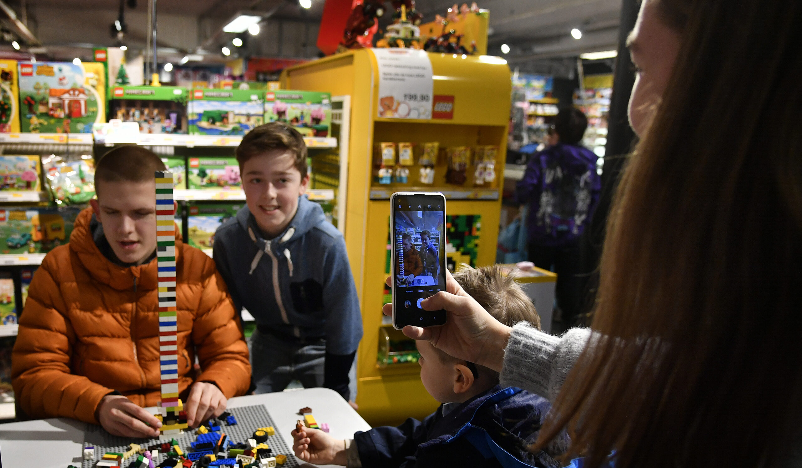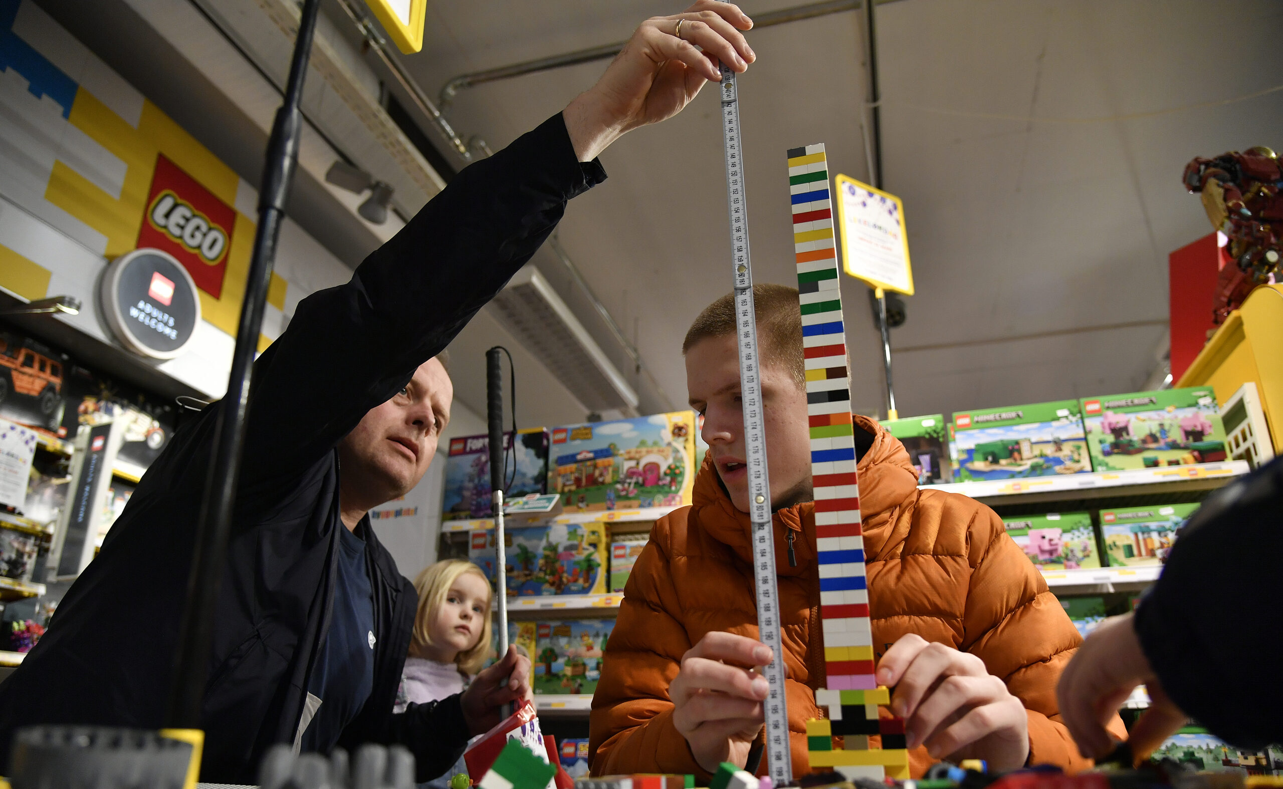 – Det er om å gjøre å bygge det høyeste legotårnet, sier Syver som går i gang. – Det høyeste er på over to meter, så det spørs, sier han mellom byggingen av det tynne tårnet og barn som vil ha selfie. 107 centimeter, kunne Joachim Valderhaug måle.