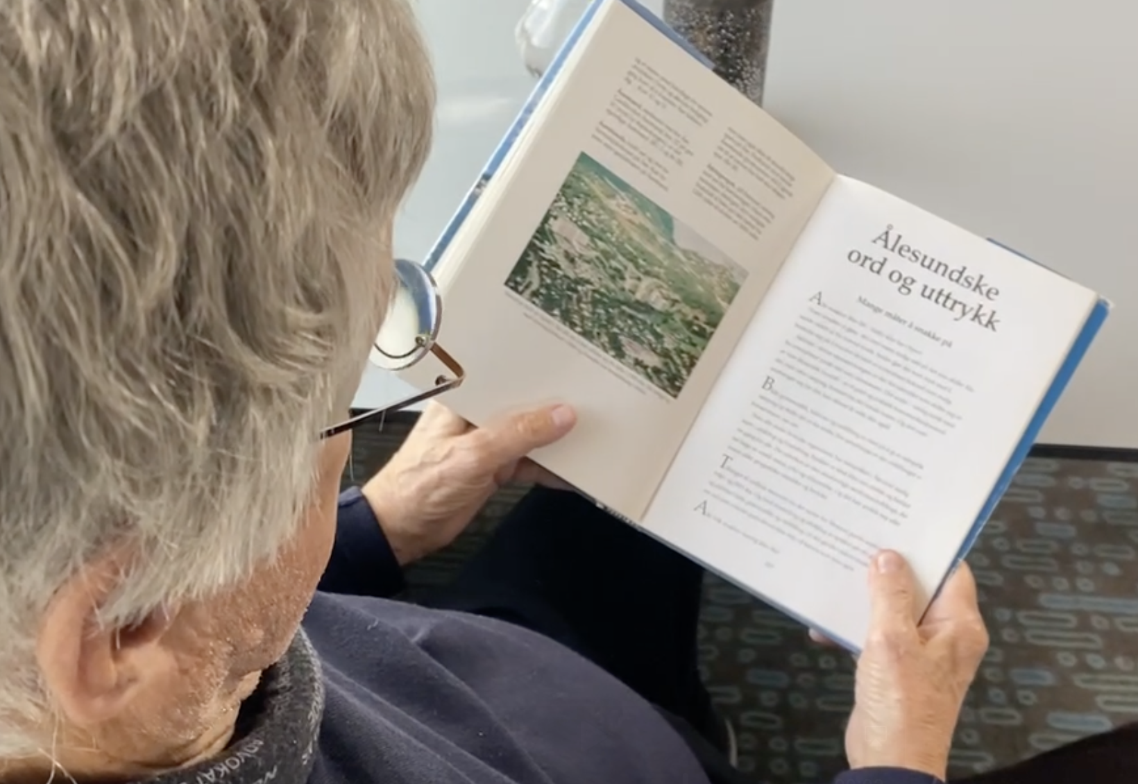 – Dinna boka må du ta med deg hjem sa han. Den er veldig grei å bare slå opp i. I hånden holdt han et eksemplar av «Ålesundske ord og uttrykk». Vi satt på Fjellstua i anledning filming av en ny serie. Små snutter tilpasset Instagram. Han synes det var gøy. Han trengte ikke nødvendigvis å lære noe om det, men hadde stor respekt for nye format og synes det var gøy at ting kunne bli formidlet på nye måter.