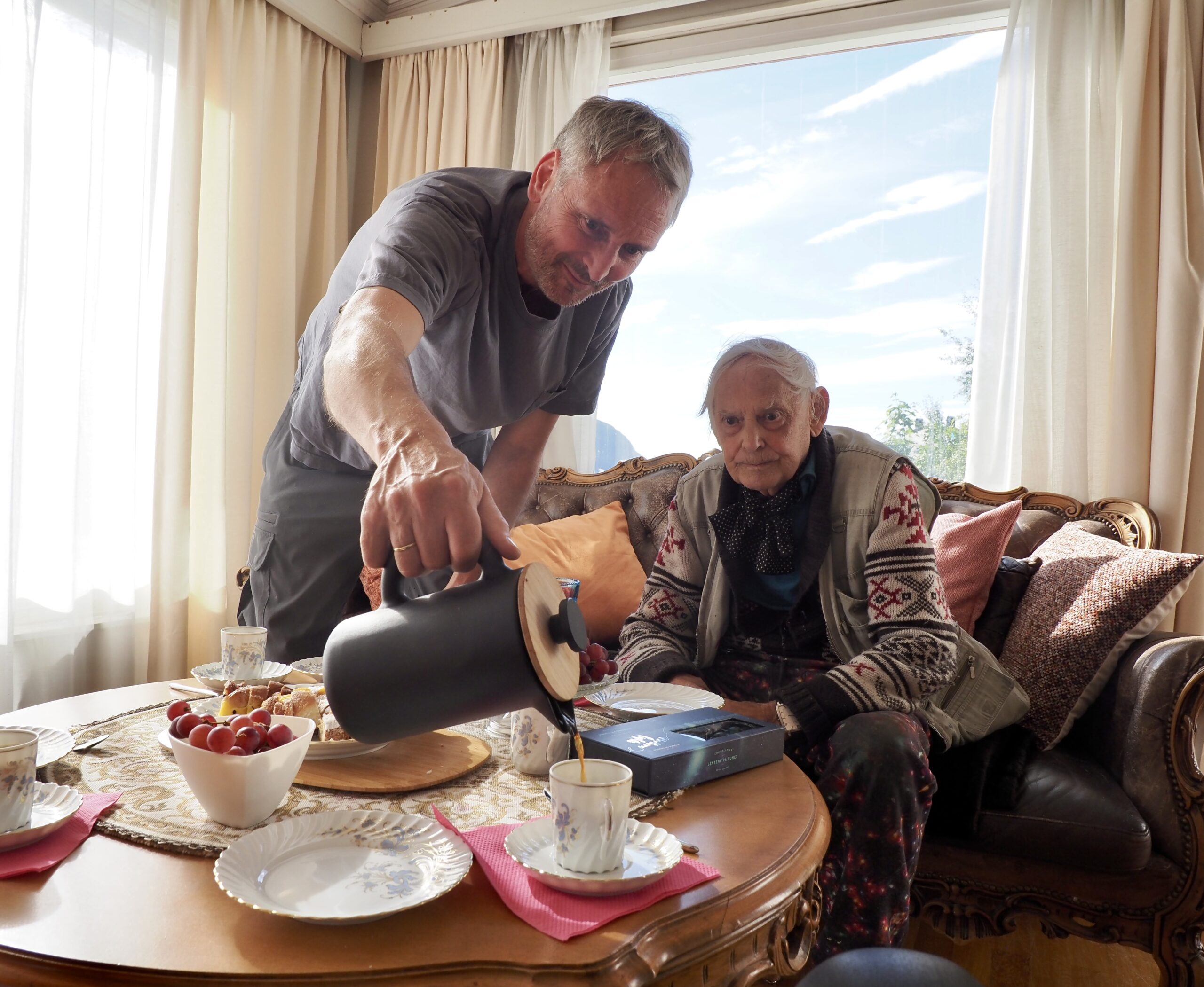 – Ja, æres de som æres bør, sier han og legger ikke skjul på sin begeistring for de han har rundt seg. På bordet kommer småkaker, deilig konfekt og wienerbrød og stemningen er satt for en god prat om mye.