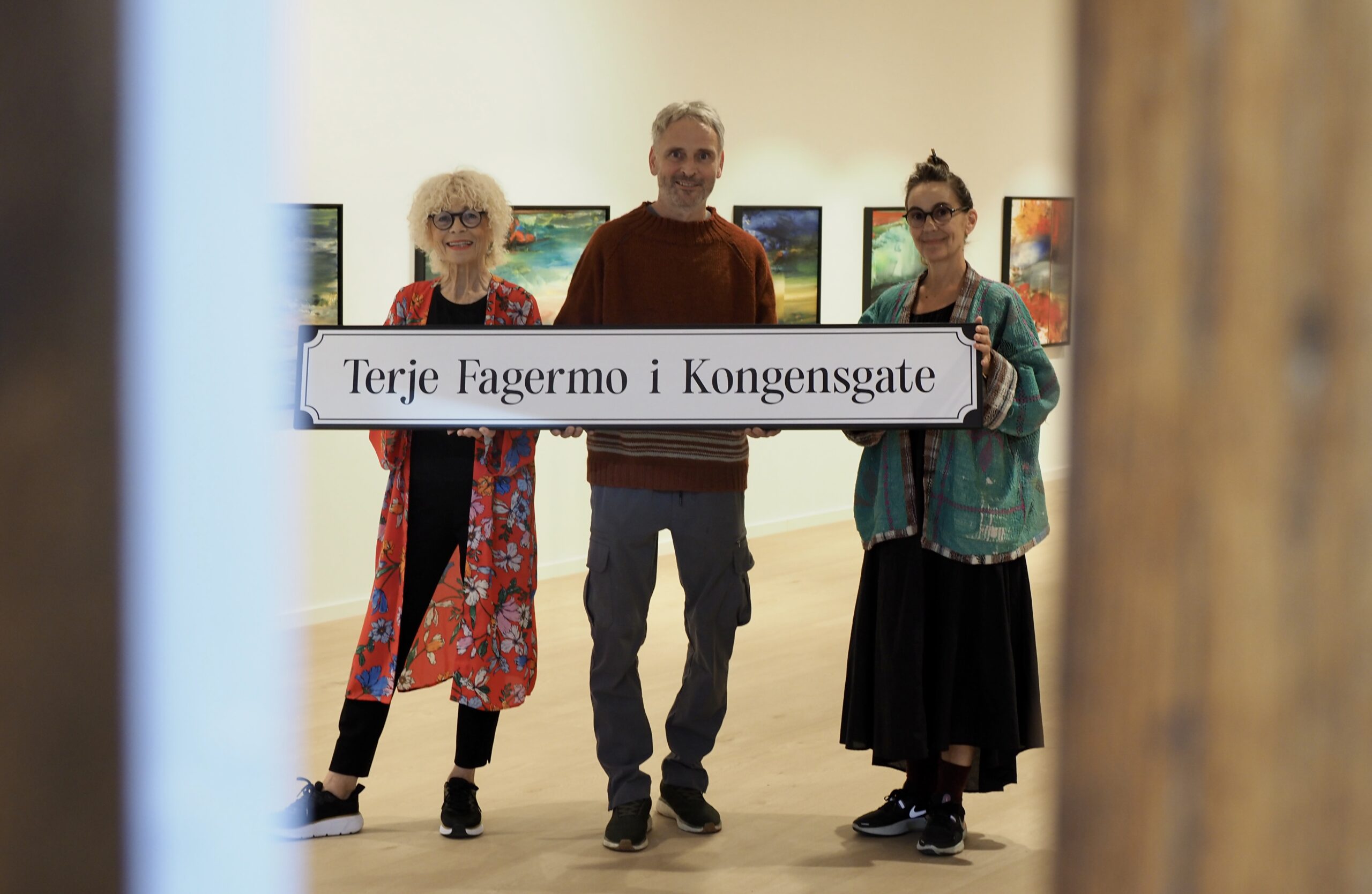 – Jeg er så heldig å være omringet av et A-lag, ellers hadde det ikke blitt noe ut av noe. Da hadde jeg bare malt og malt uten at noen hadde fått se noe, sier han om trekløveret som også er tilstede i det Bypatrioten trer inn i huset. De han snakker om er ingen ringere enn datter Solveig Fagermo med mann Christoffer Svendsen som er produsenter og kurator Anne Standal.