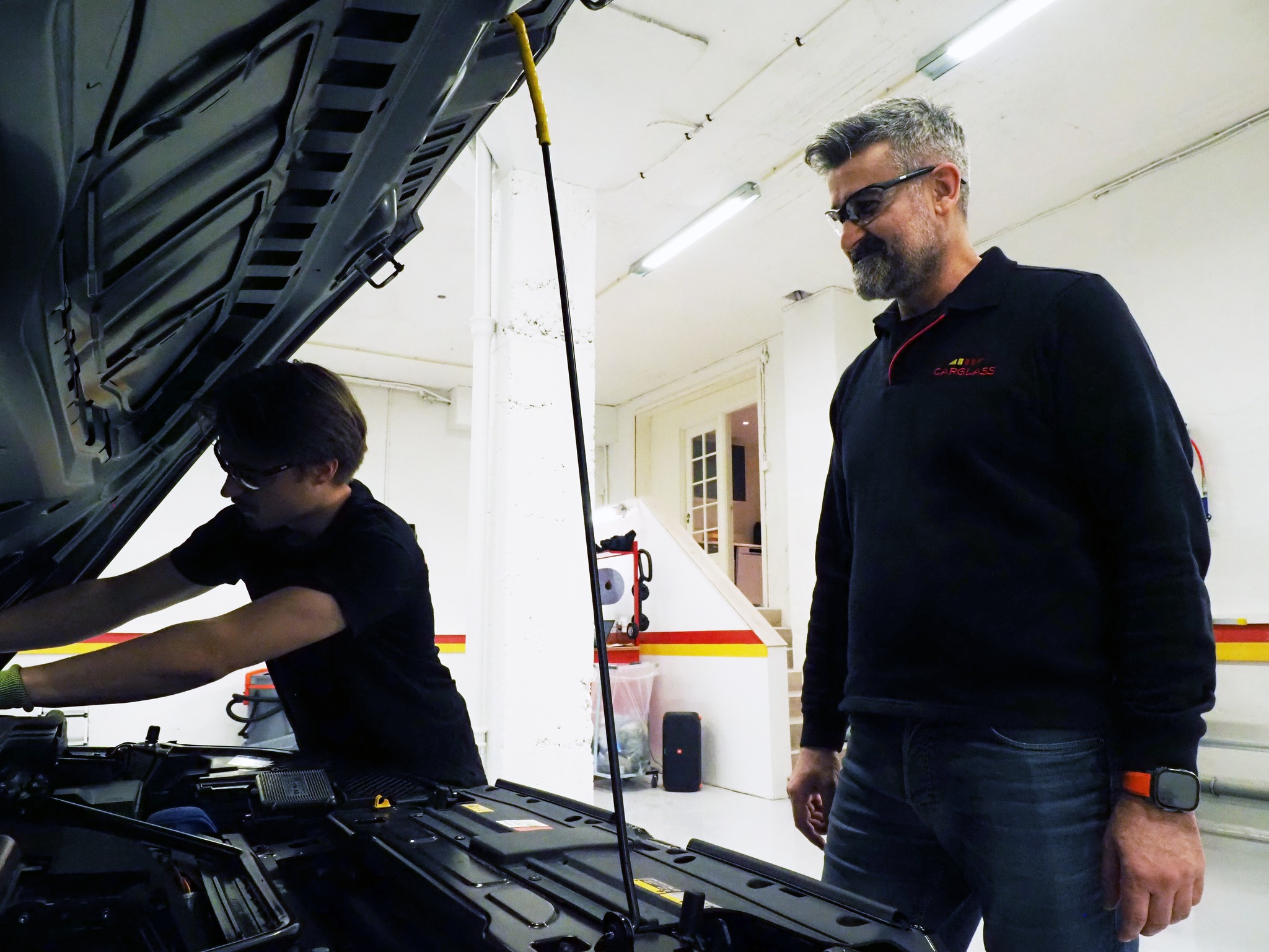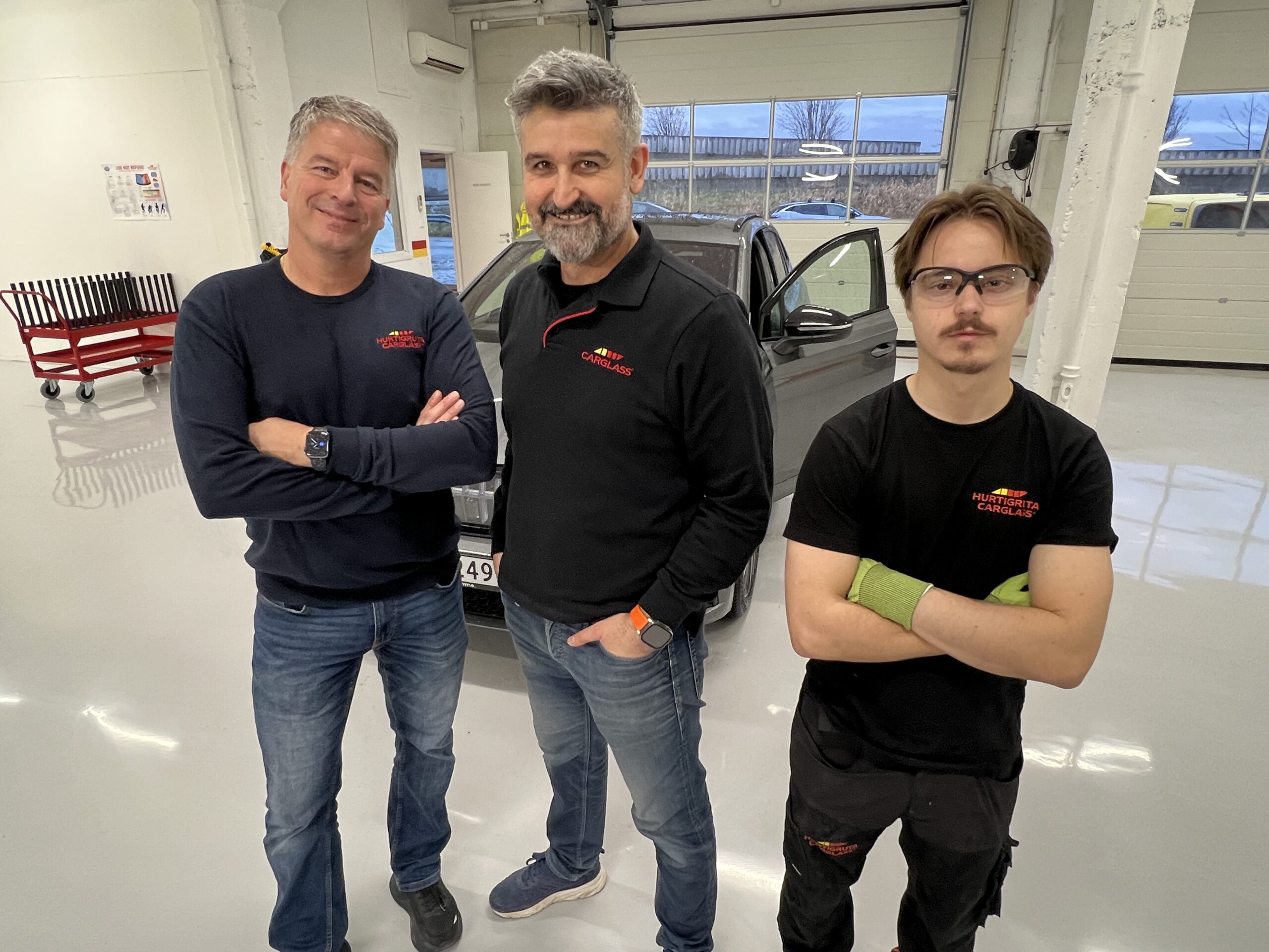 – Klart vi skal servere kake. Det blir både kaffe og kake fra kl. 10.00 , så vi håper folk tar turen innom oss for å si hei, sier han som en ooppfordring og presenterer oss for Siyar Barmani som er plassleder og bilglasstekniker Oscar Bøstrand. Begge ansikter du vil møte på når du trenger å få skiftet ruter på bilen din.