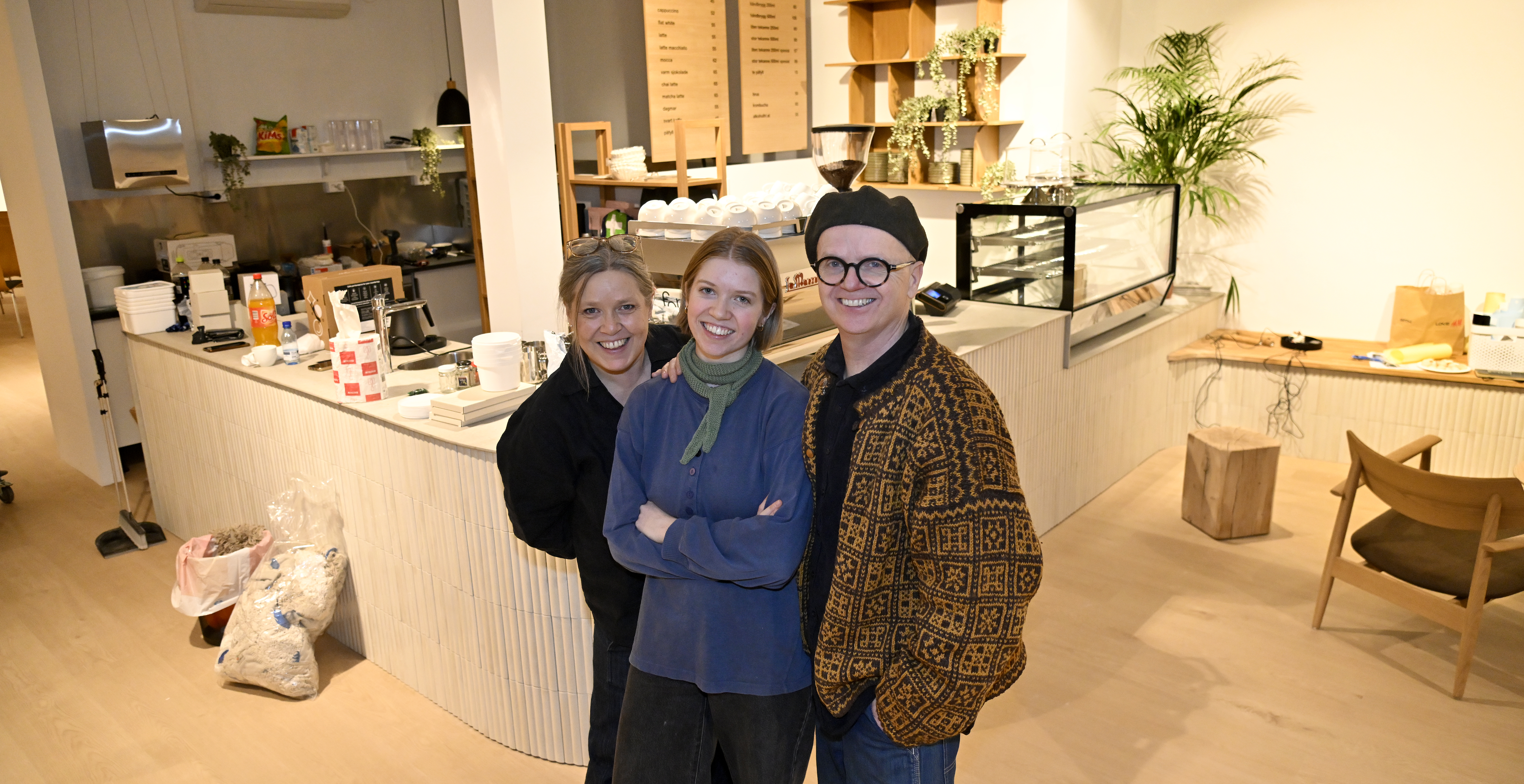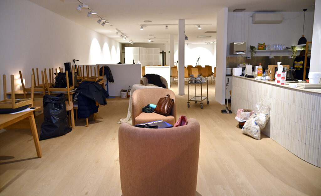 -Vi vil ha åpent hver dag fra tirsdag til søndag fra 11.00 til 17.00, men holder stengt mandagene, sier Sunniva, samtidig som kaffemaskinen bekrefter at den fungerer. Det lukter kaffe i lokalene, og fra torsdag er den for alle.
