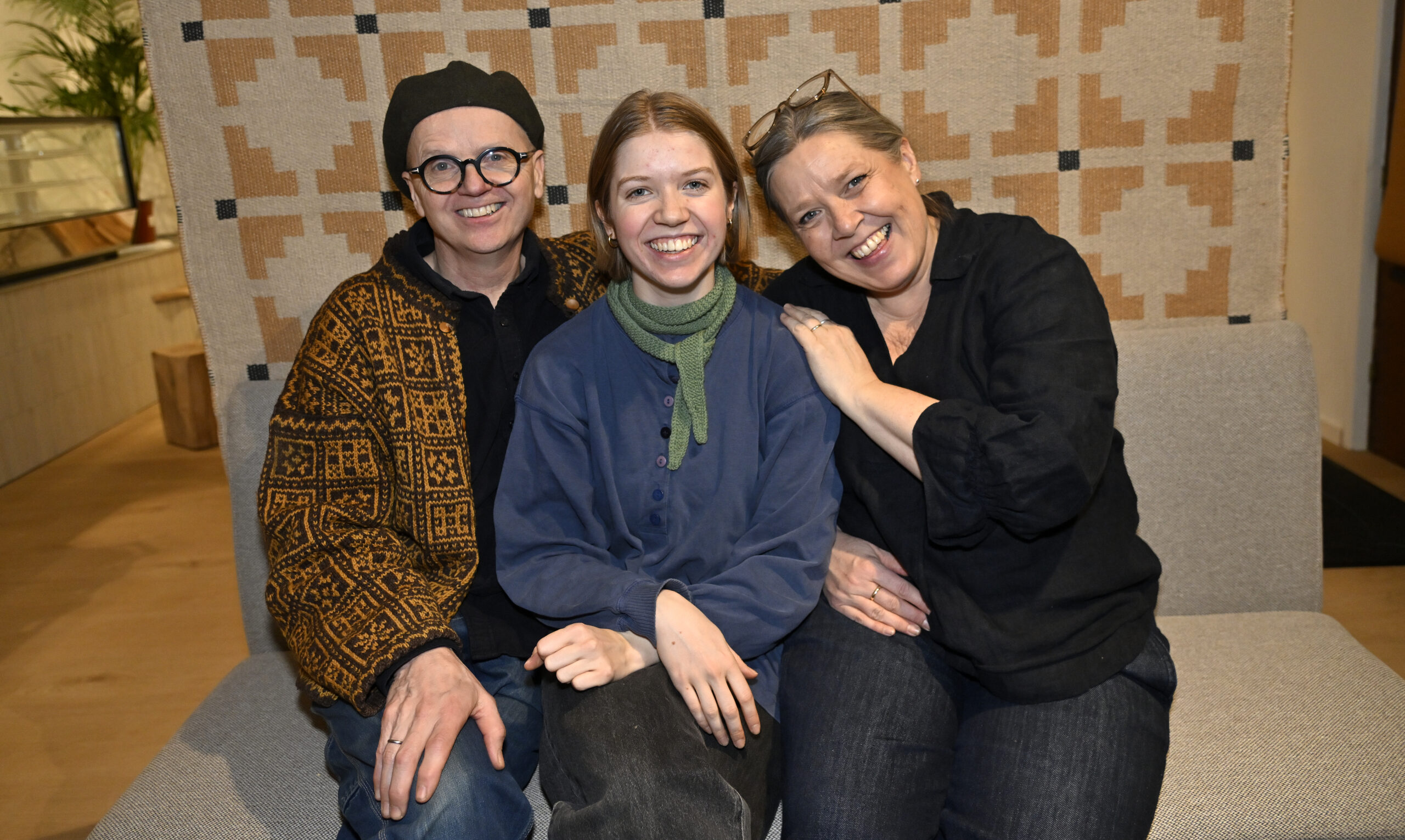 Mor Ragnhild, pappa Jan og datter Sunniva Huse tar en pust i bakken når Bypatrioten stikker snuten inn bak de papirdekte vinduene i Kongens gate 24.