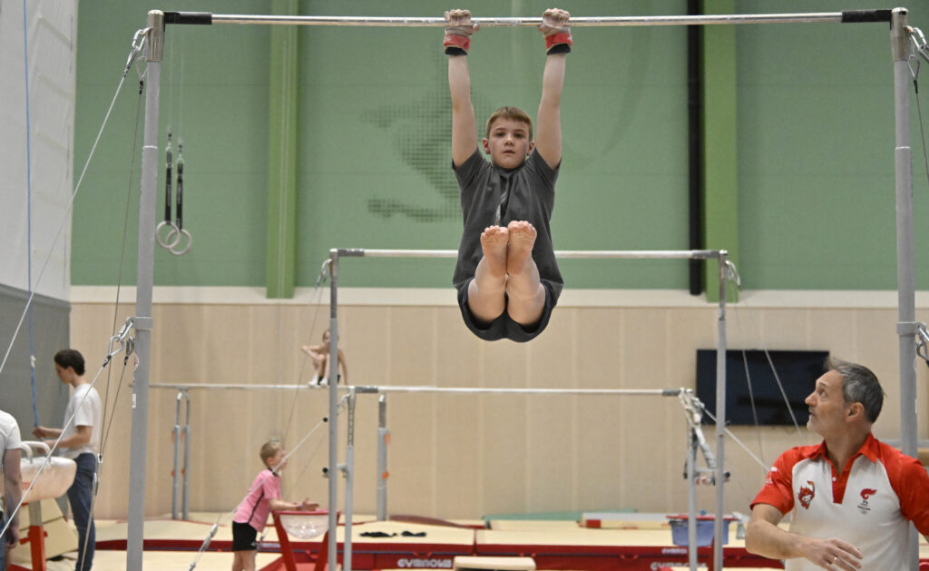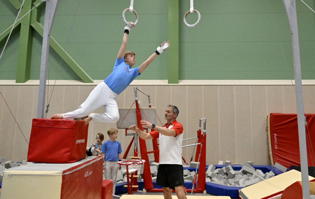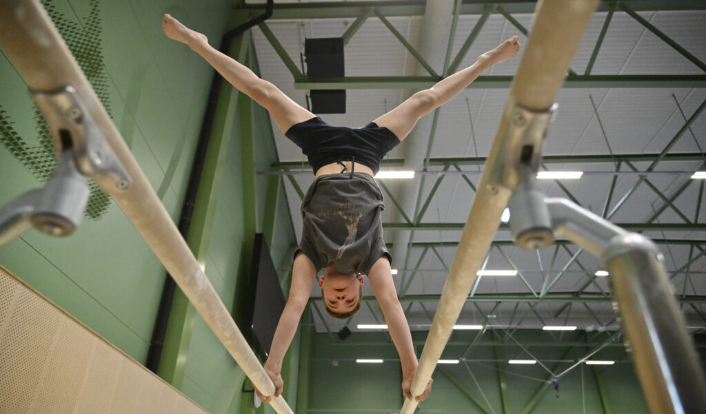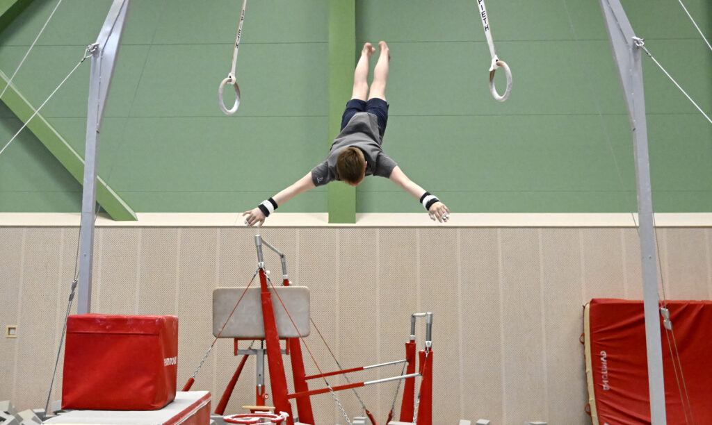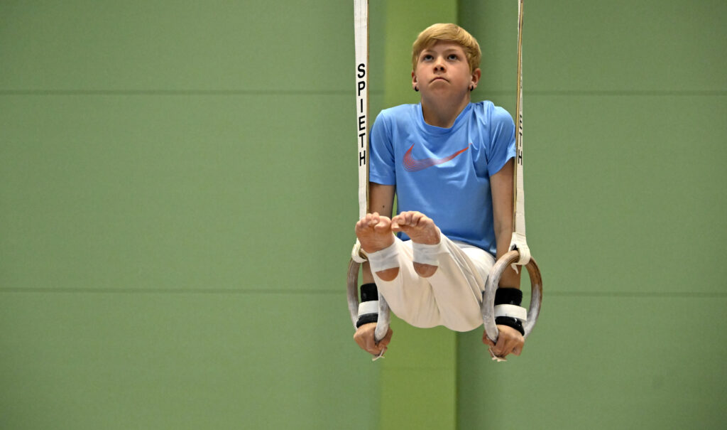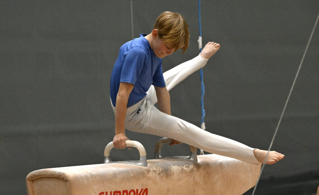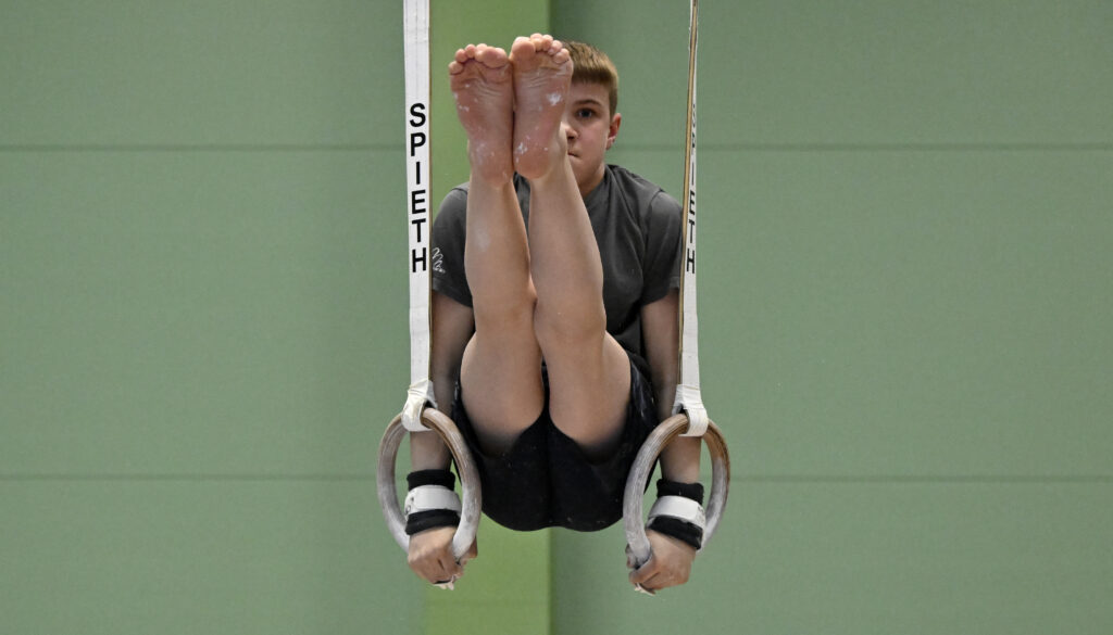 Samson vet nøyaktig hva han skal gjøre i skranken. Med et konsentrert blikk og kroppsbeherskelse er 11-åringen på toppen i løpet av sekunder. Og når øvelsen er unnagjort svinger han seg elegant på siden og står stramt på bakken.