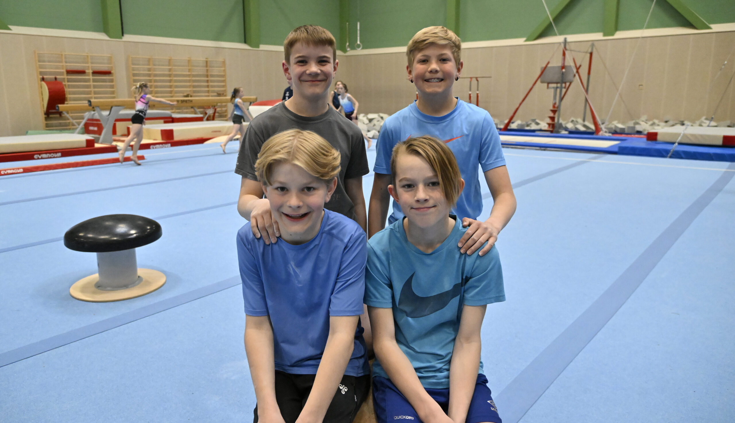 -.Frikk, Henrik, Bjørn-Isak og Samson skal i aksjon på søndag. Og det er fullt mulig å komme til Osane idrettshall og være publikum, sier han, og minner om at turn er for alle. Også små barn.