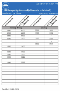 Avgjørelsen om hvorvidt kaia på sørsiden av Ålesund kan brukes, tas av operatøren Boreal Sjø, og kan komme svært brått og gjelder fra og med 27. november – rute 1148 Langevåg-Ålesund