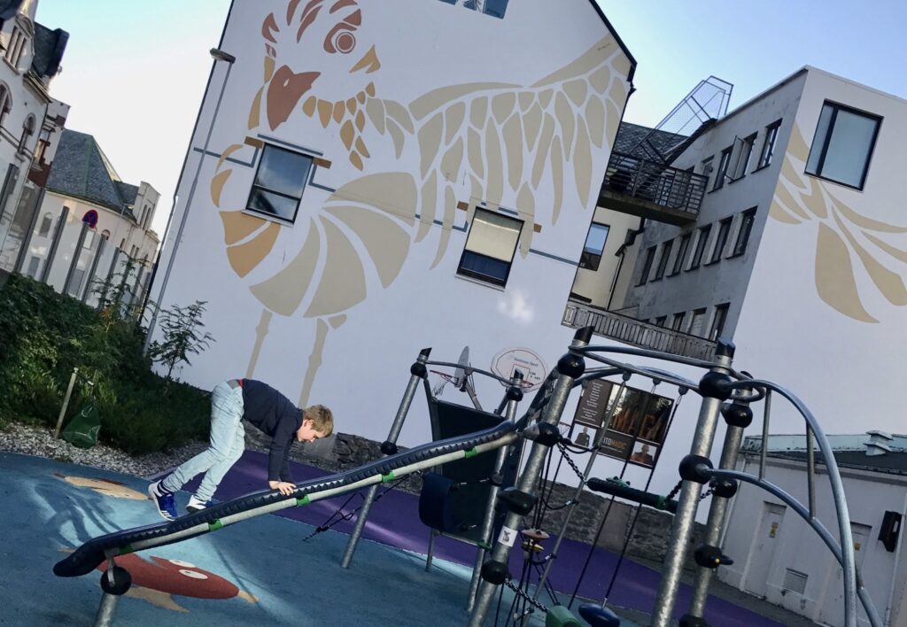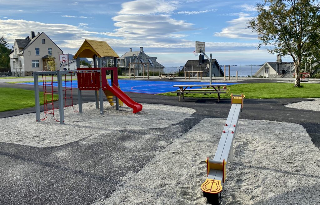 Møteplass med benker, areal for ballspill, stor lekeplass og beplanting på Aspøya. Området som åpnet i 2024 ble utviklet av Ålesund kommune i tett samarbeid med de tre kunstnerne Albin Siggesson, Vilde Vegem og lysdesigner Jesper Kongshaug.