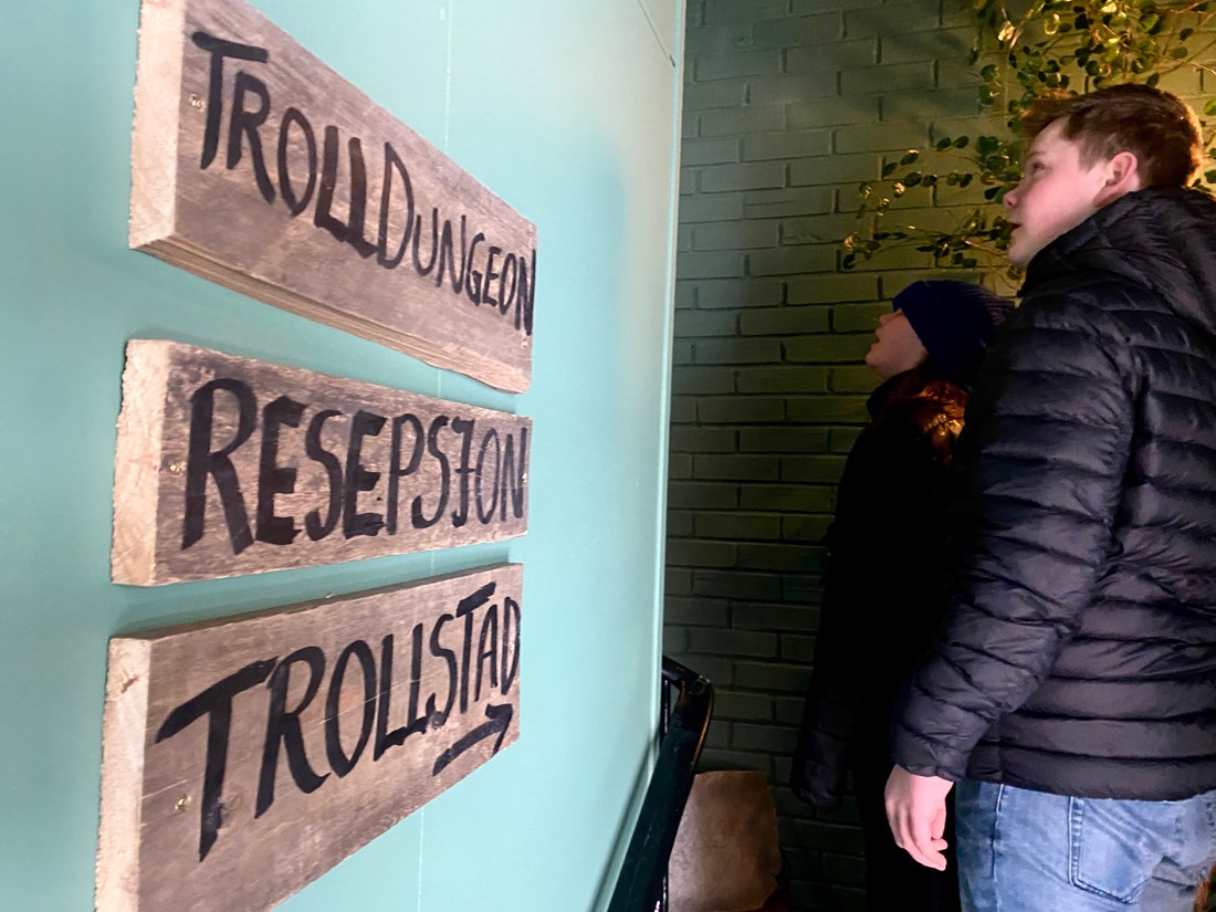 -PUH, vi kom oss ut igjen til slutt, men først etter å ha fått hjertet i halsen, løst oppgaver, krøpet i luker og bekjempet troll…skikkelige troll!
